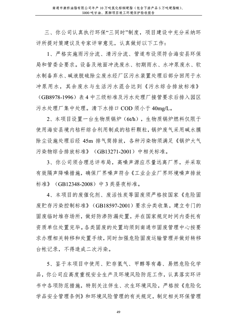 康橋油脂年產(chǎn)10萬噸氫化棕櫚硬脂、5000噸甘油、