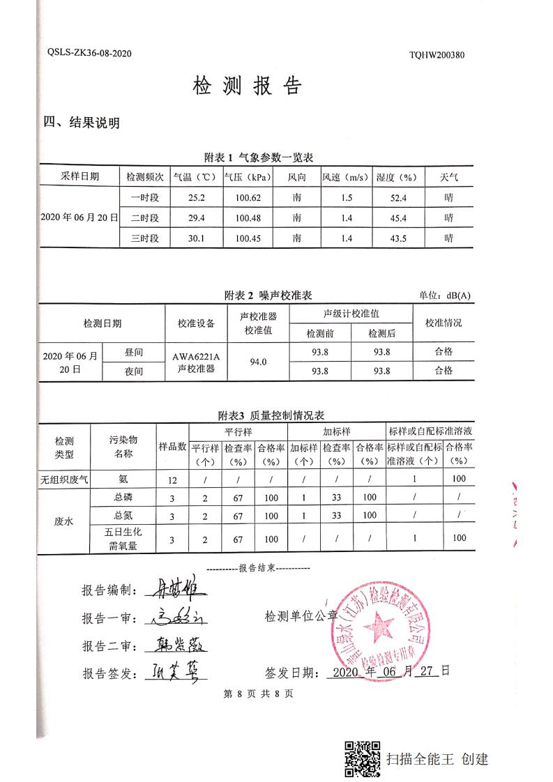 南通市康橋油脂有限公司6月份環(huán)境檢測(cè)報(bào)告