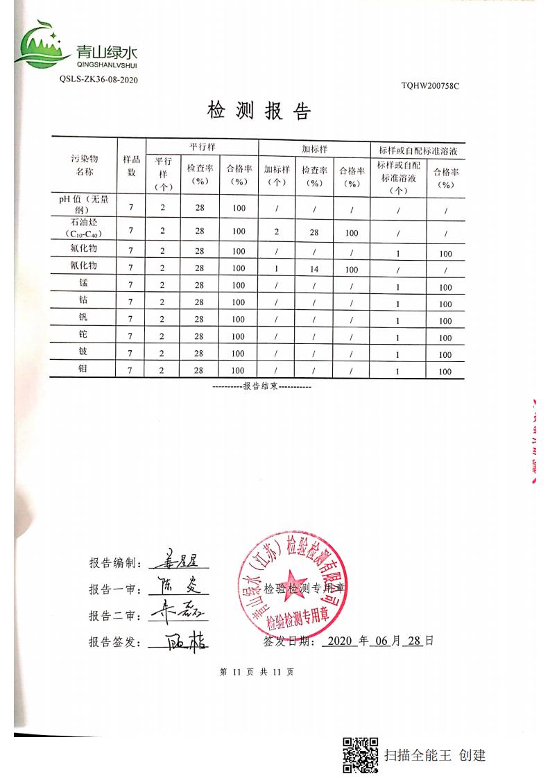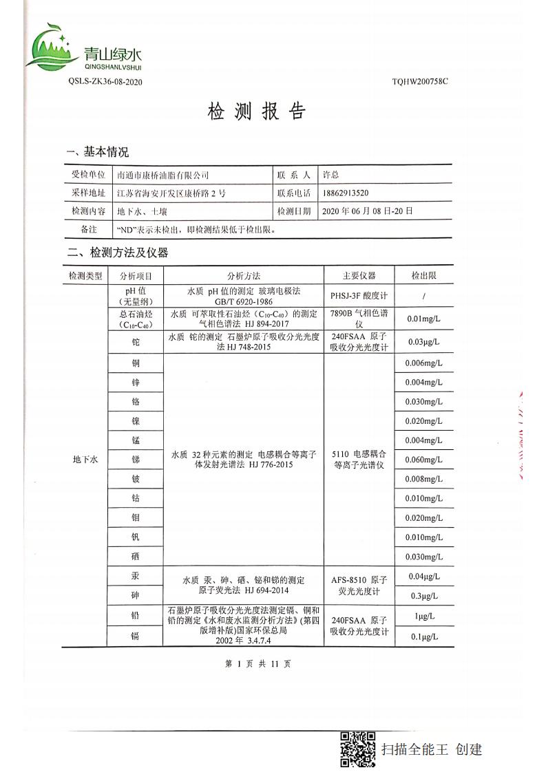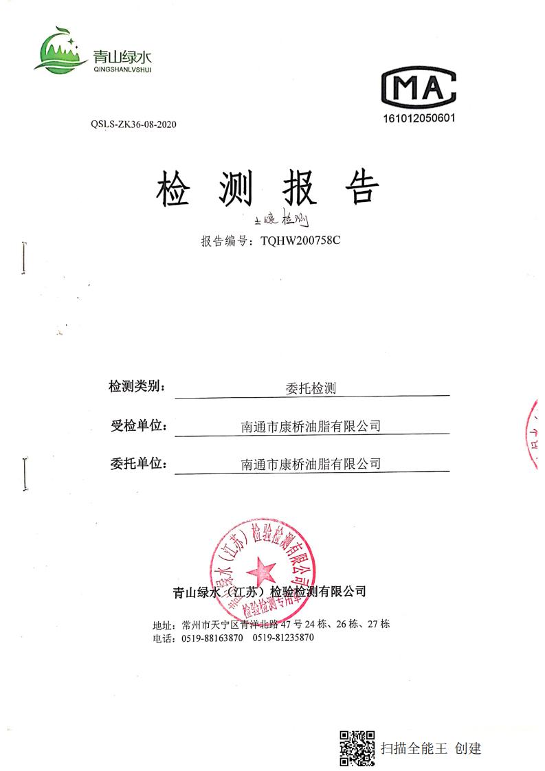 南通市康橋油脂有限公司2020土壤檢測