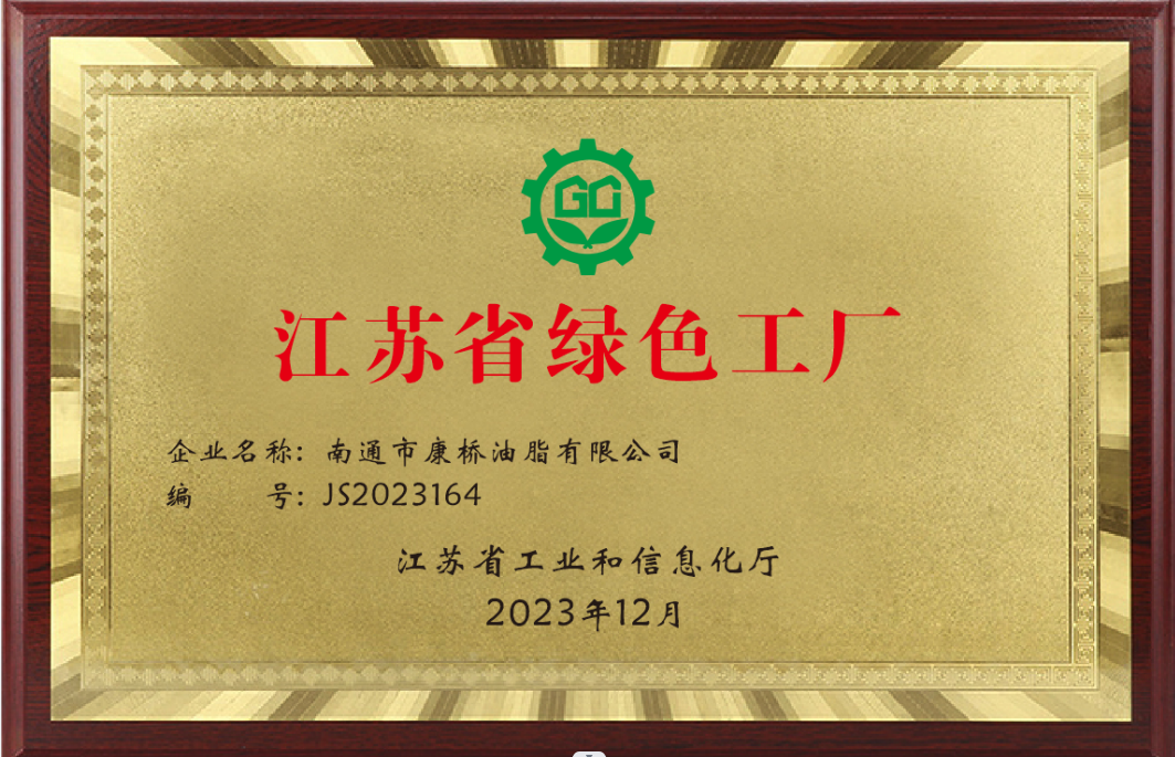 康橋油脂榮獲“江蘇省綠色工廠”榮譽(yù)稱號(hào)