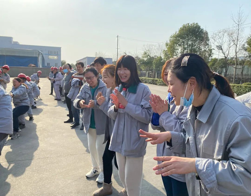 本次趣味運動會由公司工會組織,精心設計了6個競賽項目,分別是:跳繩、乒乓球、2人綁腿短跑、羽毛球、呼啦圈、拔河比賽,比賽項目既有智慧和體力的角逐,更有團結協(xié)作的完美比拼,大家積極踴躍的投身到活動當中,現(xiàn)場氣氛熱烈、和諧,吶喊、助威聲不絕于耳。