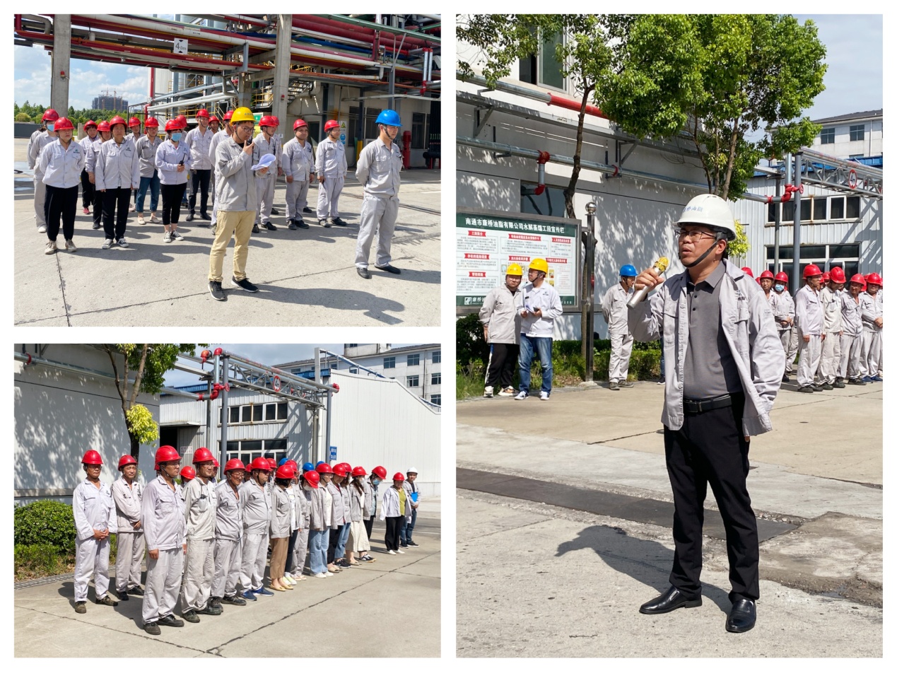 為提高職工安全生產(chǎn)意識,增強突發(fā)事故響應和處置救援能力,持續(xù)落實安全生產(chǎn)主體責任,全面推動安全生產(chǎn),南通市康橋油脂有限公司在二道門北側空地組織開展導熱油泄露引起保溫棉著火事故應急救援演練。